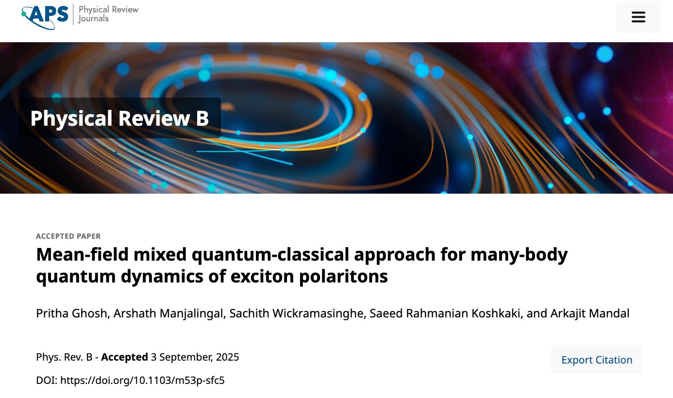 Pritha's many body quantum dynamical approach is accepted at PRB! 🎉